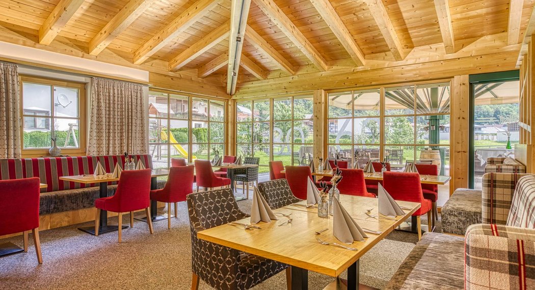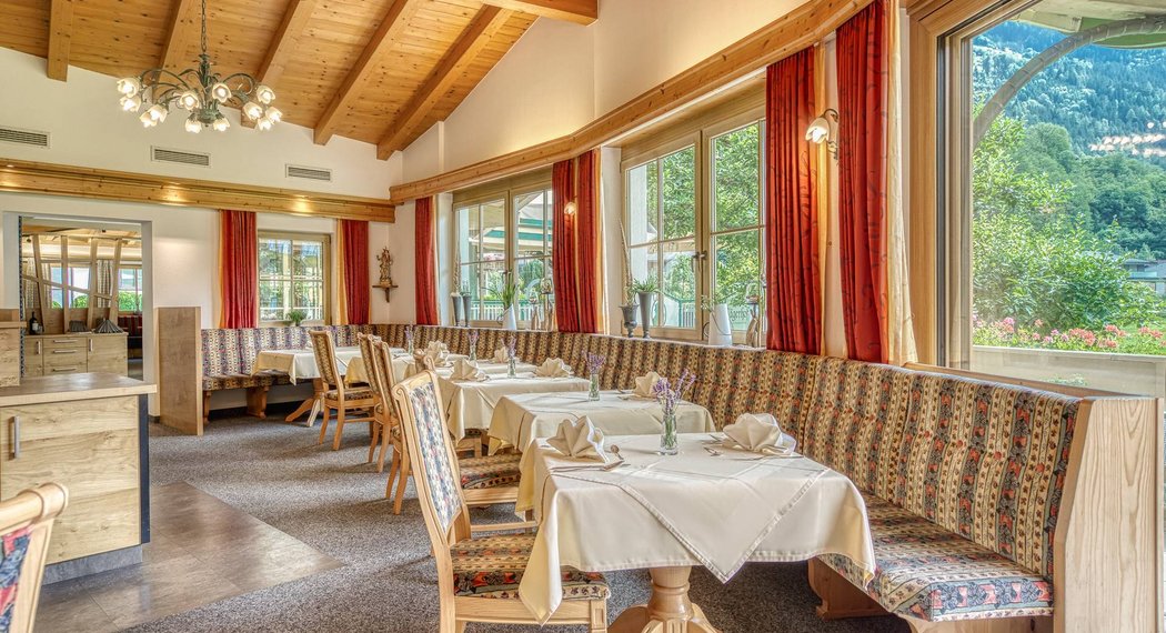 Good food is what keeps body and soul together. This is also why we love it so much. Our gourmet kitchen treats you to everything you may desire, from tasty titbits from our granny’s recipe book and classics of Austrian cuisine to culinary borrowings from European neighbours. All our meals are prepared with love, using fresh ingredients from local produce. Host Klaus Jäger and his daughter graduate sommelière Nicole have many fine wine in their cellar and will be happy to advise you. Not only the food and drinks of our Oetztal restaurant entice, but also its unique flair: dine in the rustic ambience of our Jägerstube or enjoy the panoramic view of the mountains from our spacious dining hall, relax at our comfortable bar or relax on our terrace in the sun. Regardless of what you are looking for, you are guaranteed to find your favourite spot in our Oetztal restaurant.