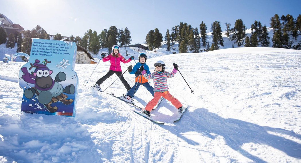 WIDI, the mountain sheep and mascot of the Oetztal region, is a professional on skis. In his winter wonderland, high up in the mountains, he supports the ski instructors in showing the young ones how to stand on skis and use them to glide down the most beautiful slopes into the bottom of the valley. The youngest members of your family will love family ski holidays in the Oetztal as much as you will. In Europe’s highest situated kindergarten at the top station of the Hochoetz ski lift, children from the age of two upward are in safe keeping. They can play and romp just as they please, while their older siblings enjoy the adventures of the piste. Snow midgets from three upwards can playfully learn how to ski in one of three ski schools of the WIDI winter wonderland. All those with previous experience on skis can use their family ski holidays in the Oetztal for a rapid descent on our age-appropriate slopes, or for practising their first freestyle stunts in WIDI’s Fun Park.